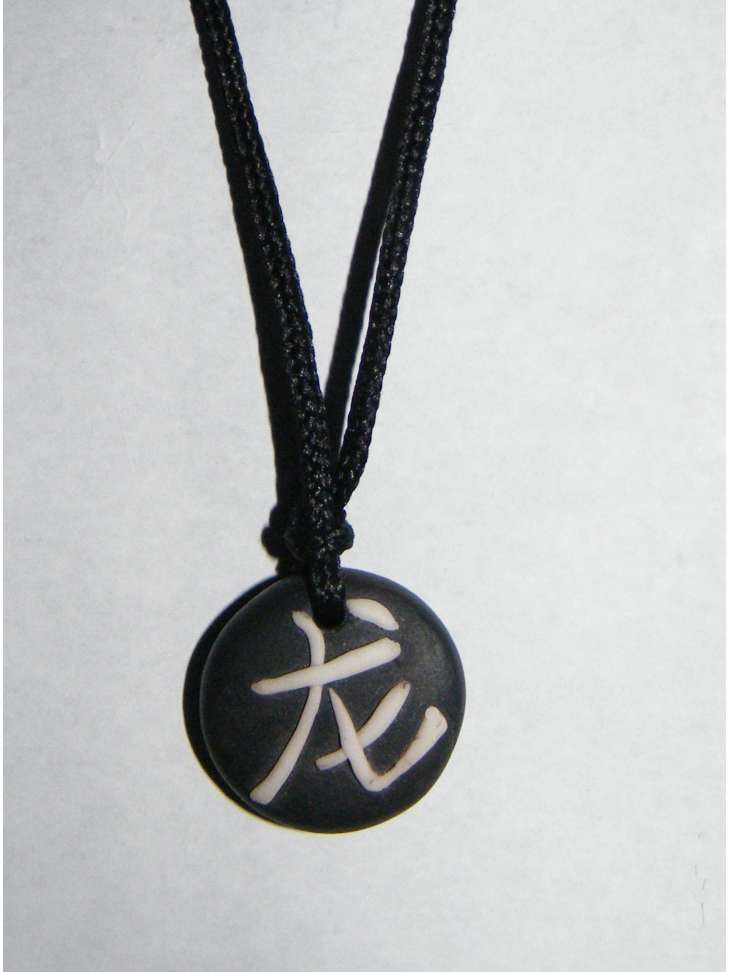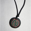 na prvoj ogrlici zeleno-crveni znak je aficki i znaci svemoguci bog....na drugoj je znak za zmaja...na cetvrtoj je znak za vuka radjen je po porudzbini......